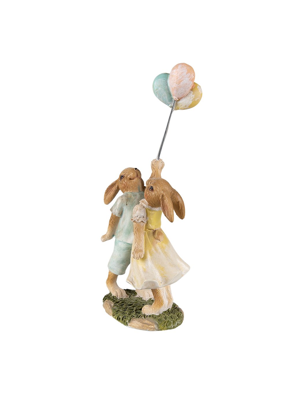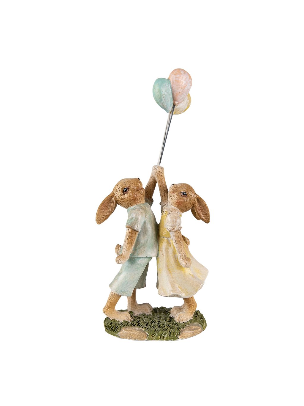 S výškou 22cm je figúrka výraznejšia, no stále pôsobí ľahko a hravo. Pastelová kombinácia mentolovej, maslovej žltej a jemnej ružovej krásne zapadne do jarného aj romantického interiéru. Detailne spracovaná tráva na podstavci a štruktúra srsti dodávajú figúrke prirodzený vzhľad. Vyrobená z odolného polyresinu, ktorý je pevný a tvarovo stály, si zachová svoju krásu aj pri každoročnom sezónnom zdobení.