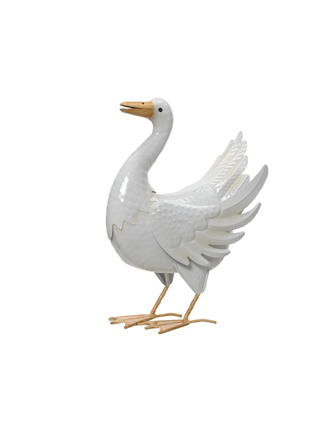 Dekorácia je vyrobená z odolného železa a má bielu povrchovú úpravu, ktorá pôsobí sviežo a ľahko sa kombinuje s rôznymi štýlmi exteriéru. Vďaka vodeodolnému prevedeniu zvládne dážď aj vlhko bez náročnej údržby. Výška 33cm je ideálna na terasu, balkón či do záhona – kačka je stabilná, no zároveň dostatočne ľahká na presúvanie.