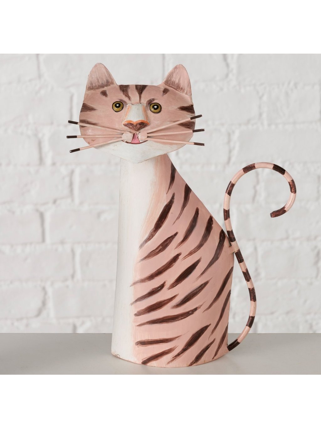 Kovová mačka Mautzi rozhodne nepatrí medzi nenápadné dekorácie. Jej výrazná silueta, ručne maľovaný vzor a jemne lesklý povrch jej dodávajú osobitý šarm, ktorý v priestore okamžite zaujme. Pôsobí trochu hravo, trochu elegantne – presne ako skutočná mačka 🐱.