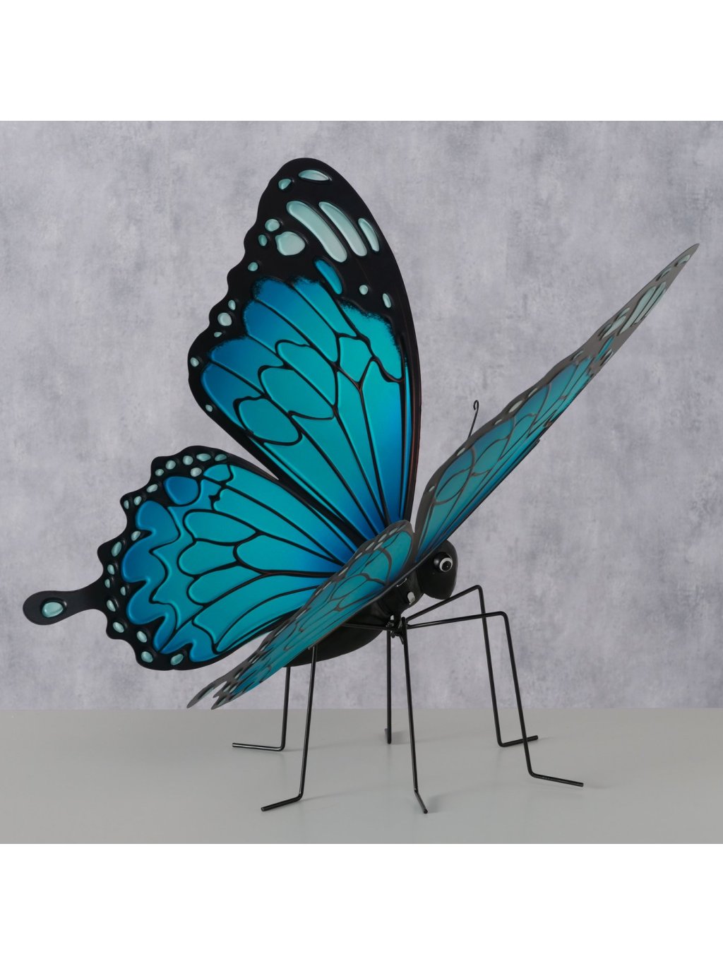 Motýľ Floriana nepôsobí len ako doplnok, ale ako umelecký prvok. Rozpäté krídla, výrazné farby a jemná kovová konštrukcia vytvárajú dojem ľahkosti a pohybu – akoby sa motýľ práve chystal vzlietnuť ✨.