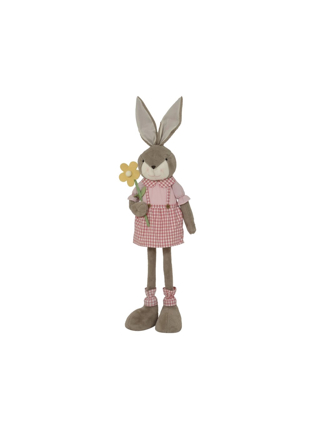 Tento výrazný stojaci zajac je presne ten typ dekorácie, ktorý si nikto nevšimne len tak mimochodom. Vďaka svojej impozantnej výške 158cm sa okamžite stáva dominantou priestoru a prináša do interiéru veselú, jarnú náladu. Jemný úsmev, ružové kockované šaty a kvietok v ruke mu dodávajú priateľský a hravý charakter.